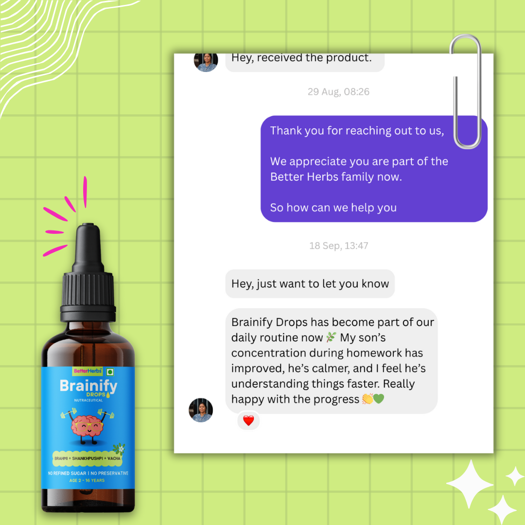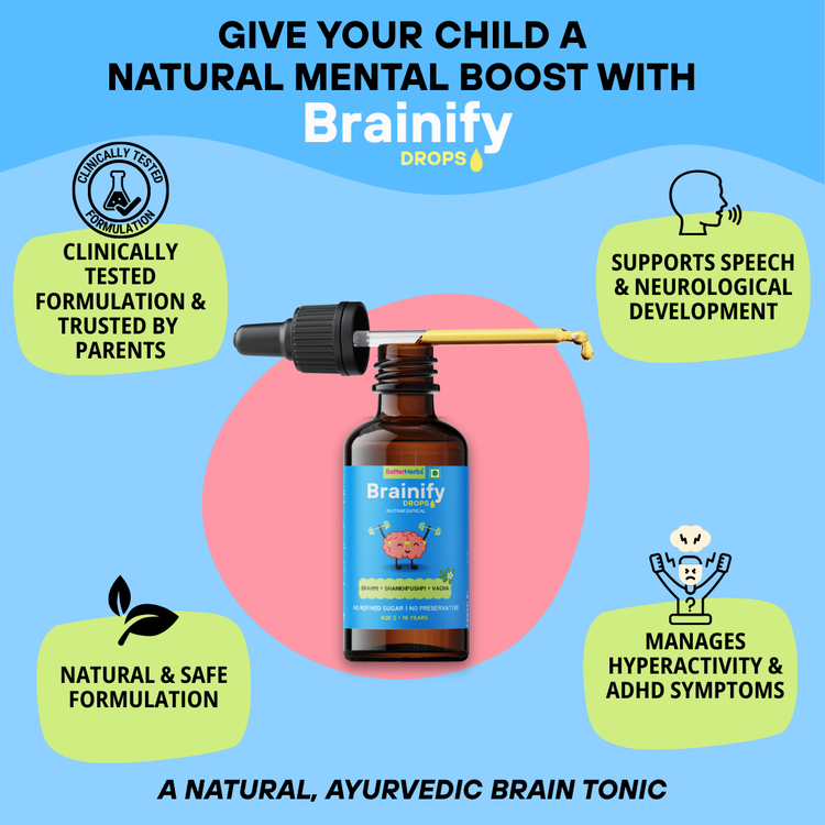 Brainify Drops – Clinically Tested Ayurvedic Formula for Kids’ Brain Health (2-16 Yrs) | No Added Sugar & Preservatives - 30ml