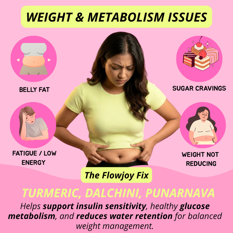 Turmeric and Cinnamon support metabolic health and insulin function, which are factors in PCOS-related weight challenges. However, sustainable weight management requires diet and exercise—this is a supportive adjunct only.