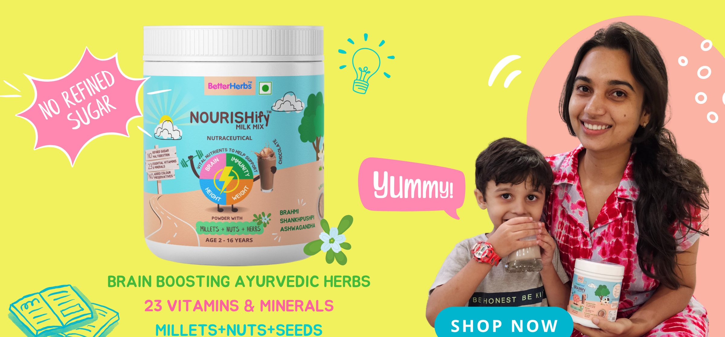 NOURISHify Nutrition Powder for Children Age 2-16 Years |  Millets+Nuts+Ayurvedic Herbs | No Refined Sugar